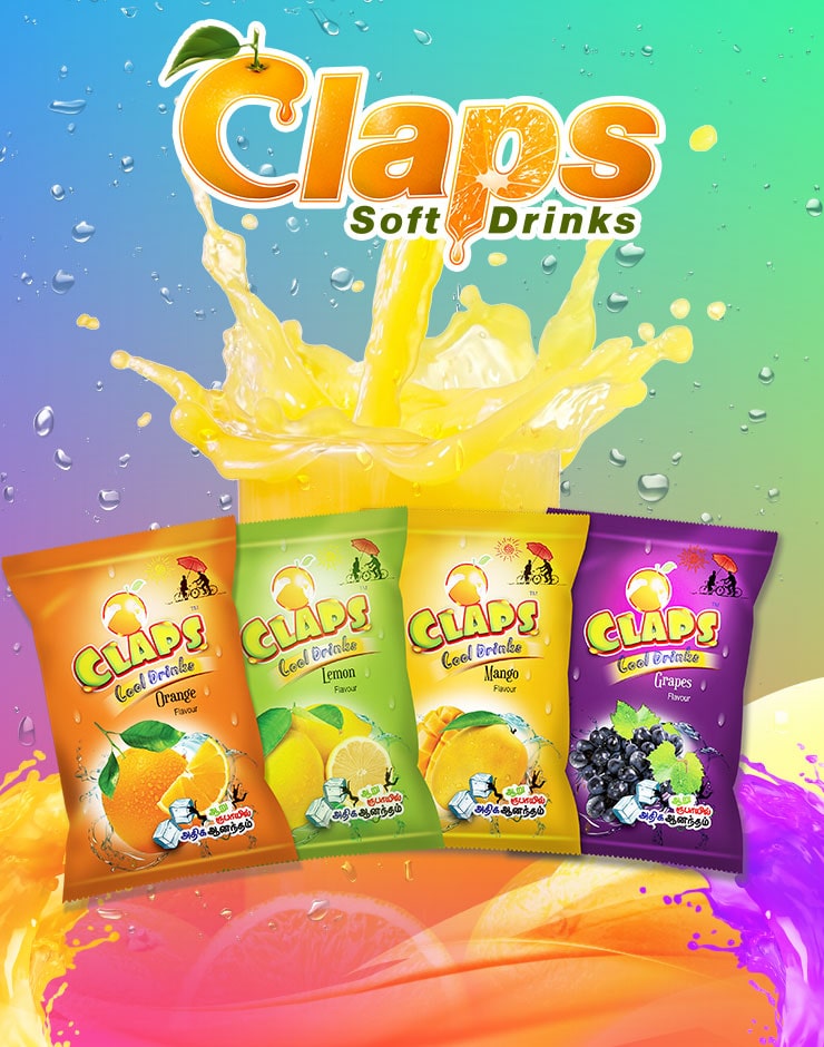 CLAPS was created in 2012 out by a passion for amazing soft drinks and service. It is a non corbonated beverages. Available on Lemon, Orange, Mango and Grapes in flavours. We believe in safe health. So, we're proud to say that we are the first group to produce the drinks in laminated sheets. Our productions are fully automatic...